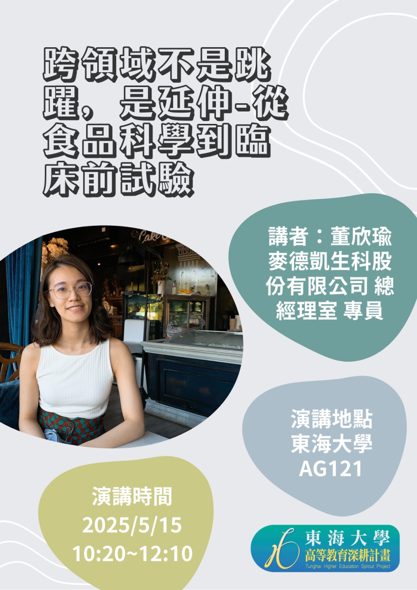1140515 跨領域不是跳躍,是延伸-從食品科學到臨床前試驗